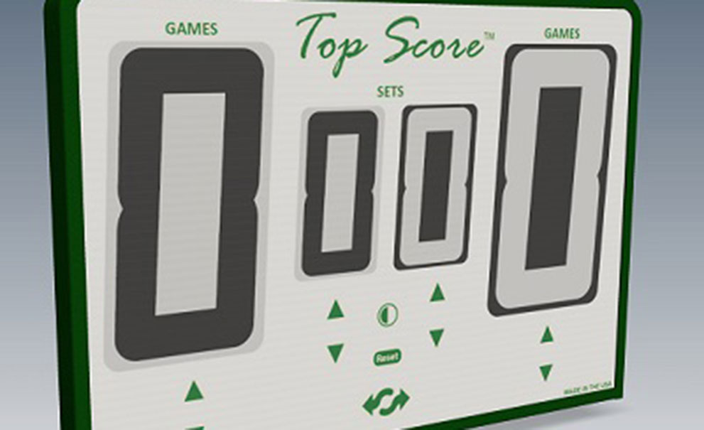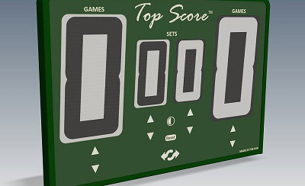 TopScore© is the world’s first digital, 2-sided, net-mounted, self-scoring tennis scorekeeper designed for use on both indoor and outdoor courts.