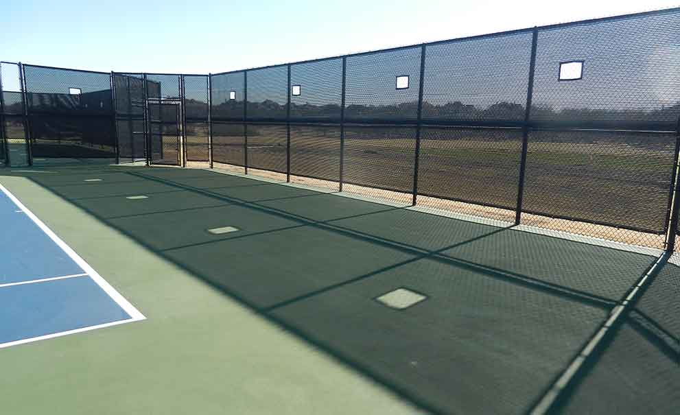 Master Systems installs windscreens designed to provide a uniform and structurally sound backdrop. The windscreen will resist strong winds, yet the installation is designed to detach at the edges in exceptionally high straight line winds in order to protect the fencing. The fencing is carefully measured to provide a custom fit. The overall design of the windscreen is to provide a good visual background and wind protection for optimum conditions.